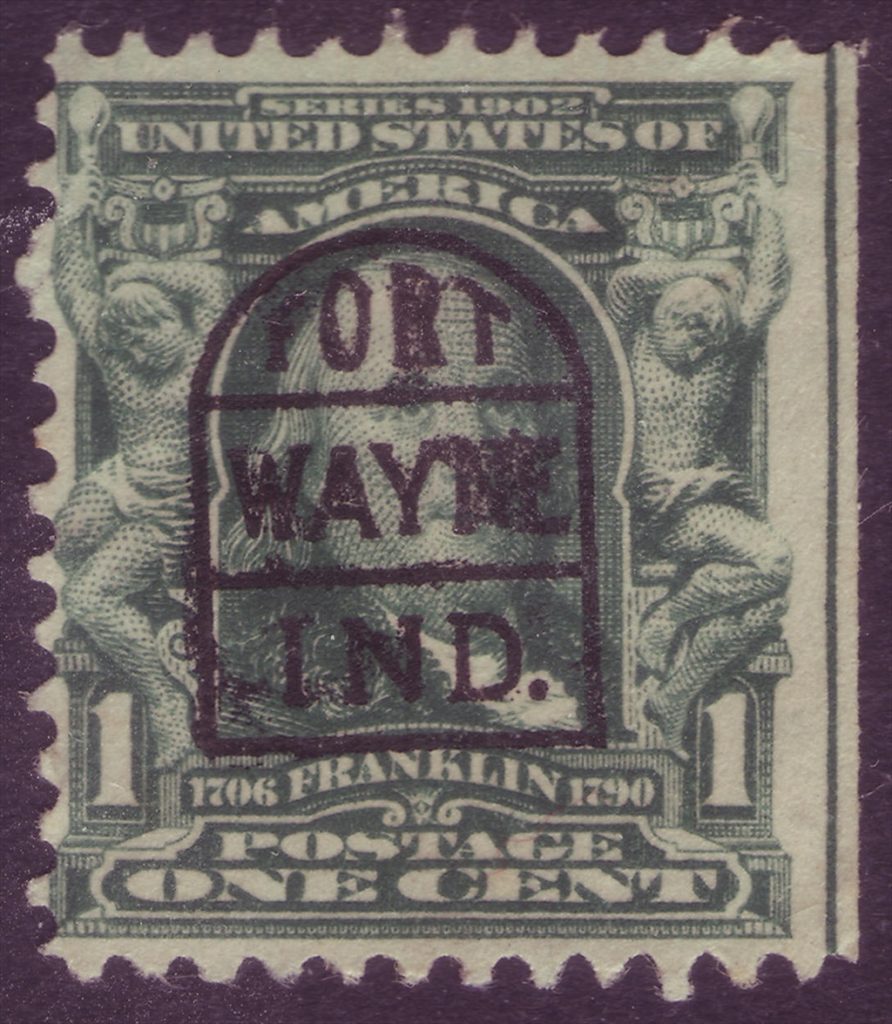 Ook zijn er voorafstempelingen waarbij de plaatsnaam in een op een venster of kerkraam gelijkende omraming zijn geplaatst, zoals Fort Wayne, INDIANA, of in een dubbel ovaal, zoals Jackson, MICHIGAN, terwijl de plaatsnaam en Staat ook wel diagonaal zijn gedrukt, b.v. Minneapolis, MINNESOTA.